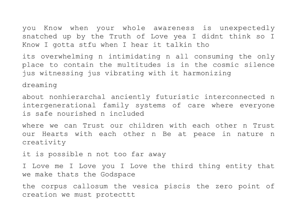 I am staying ungovernably lucid n unpredictably Loving – Becoming an airtight blueprint, a crystalline channel, indelibly resonating past this world weve dismantled