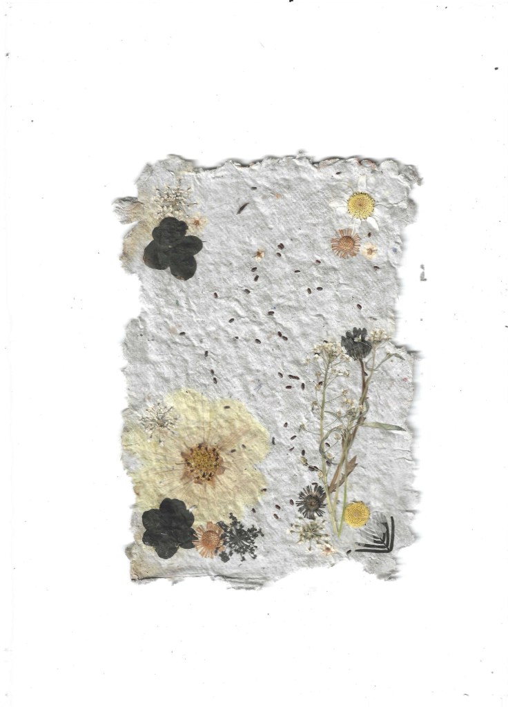 recycled mail n letters, seeds, pressed foliage