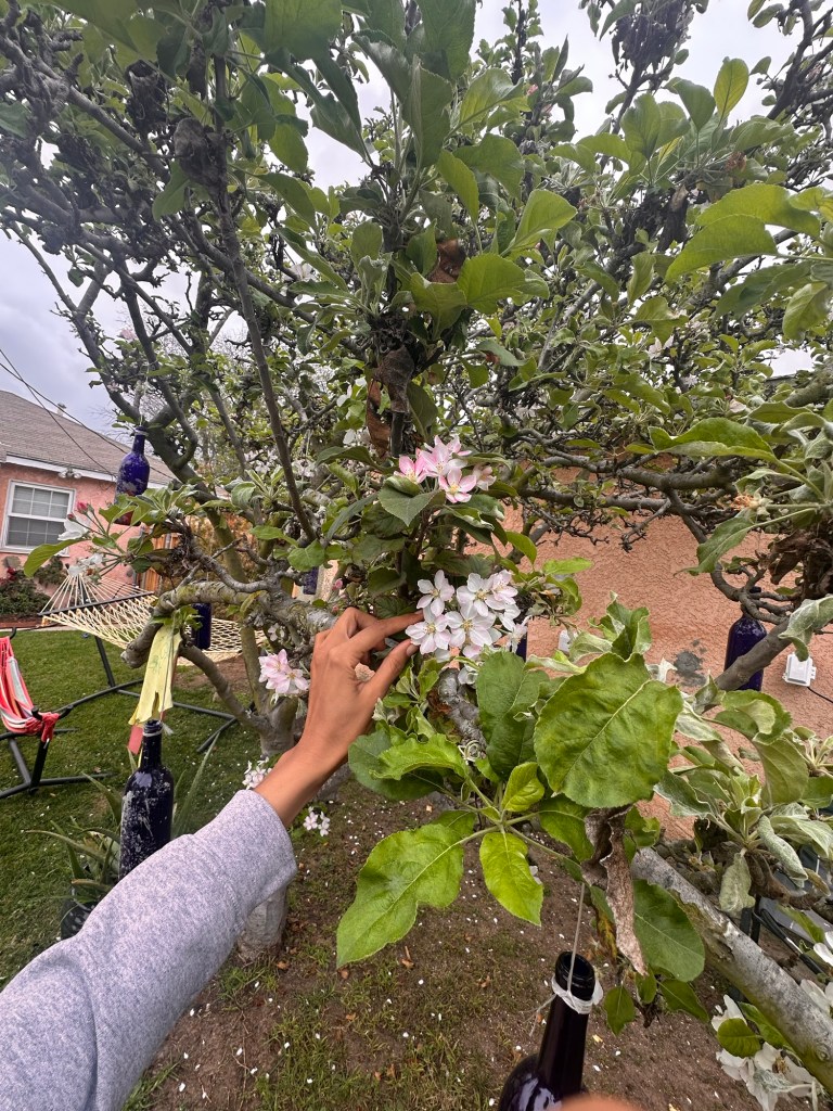 now our apple tree is blossoming with bigger petals than we’ve ever Seen