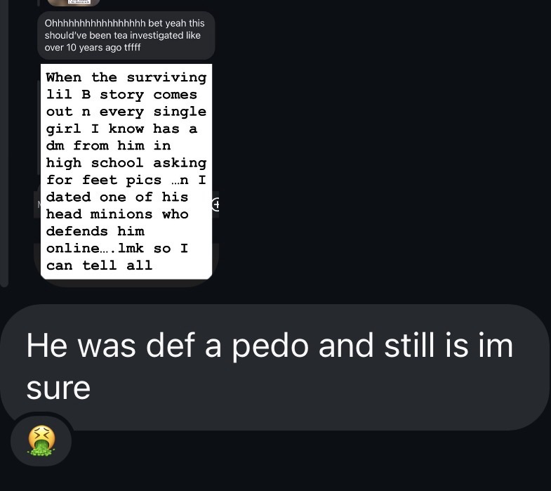 the more I share about dating a member of lil bs sex cult last year the more people come forward with stories about the guy its wild how the man I met on here n was involved with tried to groom me into accepting n affiliating mySelf with this whole network of weirdos when I genuinely did Not Know anything about “basedworld” until 2025 lol like who even cares about that these days besides incels n racists? n the only women I ever saw around were disgustingly male centered n fried (or white) I vaguely Remember the vans song n I studied in Oakland n worked in music in college but I didnt even really have social media in high school so the whole #girltime thing jus seems perverse from the outside n there shouldnt Be that type of confusion around a grown ass man to this day using other people to do his lurking n grooming for him like minions in internet image mining task forces a whole hierarchical system for protecting his perversions n to continue worshipping their weird 5’5 leader who uses stolen Eastern esoteric wisdom n hoodoo? idk to solicit american teenagers for feet pics n Life force energy but they tried to say I am perverted n projecting n judging because “jus didnt understand” n I accept that but maybe I do understand Better than you anticipated n it didnt work on me lol so my ex Began triangulating me with his lil cult n his family n randoms online to make me seem crazy or like I am the issue when all of this was brought into my Life by one person n no longer exists now that they are gone n the more I talk the more other male friends n other women validate my experience of abuse n harm n experiences with lil b movin weird asking for pics Before they could really consent or understand n everyone jus watched it happen the culture of pimping or whatever in rap is a whole other related convo but these suburban incels pretending theyre internet macking bc they heard some music online n interacted with a rapper a few Times on social media is very Sinners very vampiric very scary n very dangerous too like this person came into my whole real Life it feels very Freeing to Be old enough to peep these patterns in those first 4-5 months instead of letting a skilled manipulator fuck with my autistic head n social trauma n Loving Spirit n energy for years n years for Belonging on the internet or to Be based enough for a lil b follow back like lol that is the definition of Soul selling imo n you dont have to agree but I Know what I Seen in that mans phone n what I experienced n what the people around me have Seen its fuckkkkk allllll of those corny ass desperate people forever bc campaigning to protect a predator is cult shit I will Neverrrrrr Be a part of ever ever protect Black art n protect women who protect women n children use a dumber bitch to siphon if you want but leave the youth alone fr n honestly all that music getting pulled from dsps is karmic af you tried the wrong Mother(s)